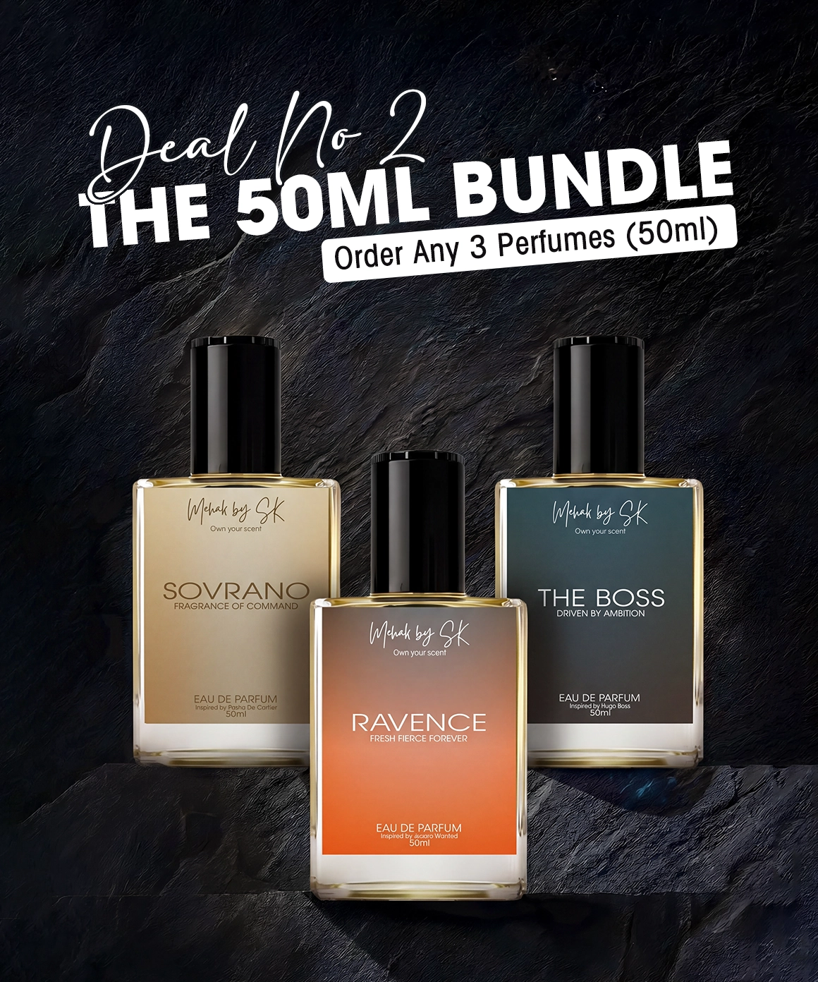Get ready to upgrade your fragrance collection with our Buy Any 3 x 50ml Perfumes Deal!